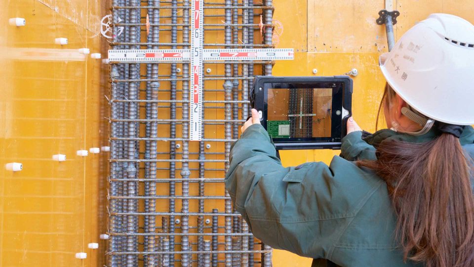 このように、活用が広がるANDPADに加え、現場では業務代行サービス『ANDPAD BPO』を積極的に活用しはじめ、独自の強みとする。新規入場者向け教育動画の作成や配筋写真撮影のレクチャーに加え、ほとんどの現場で利用しているのが「電子黒板作成+図面のピン立て作業」だ。