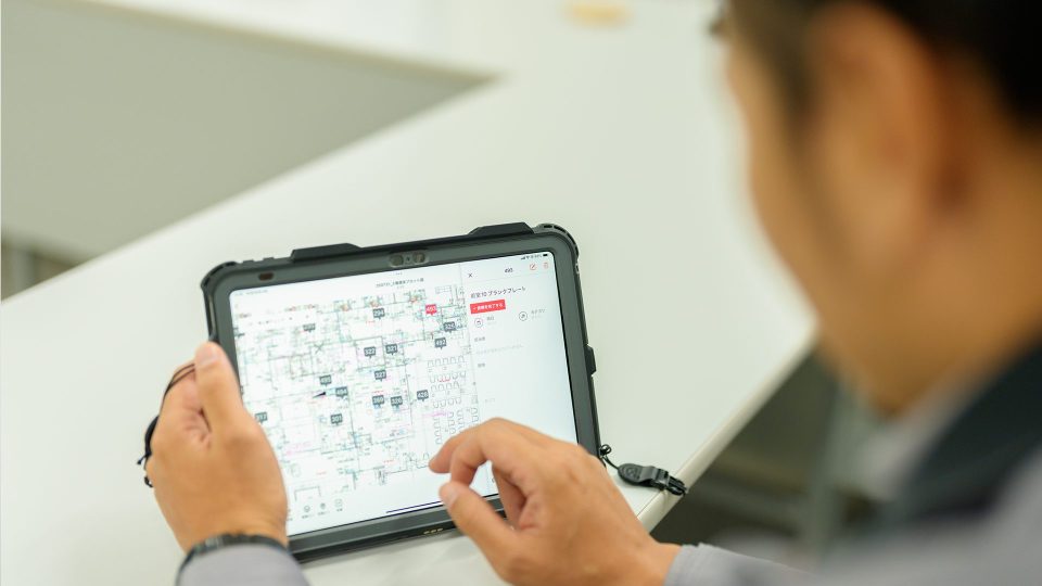 ANDPAD導入後、最も大きな変化は図面と 写真の一元管理できる体制が整ったことだと評価する。この統合は、単なる利便性の向上だけではなく、情報伝達に新たな選択肢を加えることになった。 同支店では、「記録ピン」や「依頼」機能を活用して「ANDPAD図面」に登録された是正内容や残工事をチェックしている。ピンには色分け機能があり、作業の開始や完了状 況を視覚的に把握できる。例えば、ある箇所に赤いピンを立てること で「ここから作業開始」という合図になり、完了すればピンの色をグレーに変更するといった ルールで運用している。さらに図面上に手書きなどで指示を出す「メモ機能」を活用すること でより直感的に指示や管理者の意図が伝えられ るようになった。事務所にいながらでも現場の進捗状況を一目で確認でき指示が出せるため、現場に足を運ぶ回数が減ったという。大規模現場のように複数名で現場を管理する 際の効果は特に顕著だという。従来の電話による説明では曖昧な表現による誤解が生じやすい。しかしANDPADでは、図面上の該当箇所 にメモを残すことで、視覚的に正確な情報伝達が可能になった。現場にいる作業員も、スマートフォンやタブレットで同じ図面を見ながら作業ができるため、コミュニケーションエラーが大幅に減少したという。