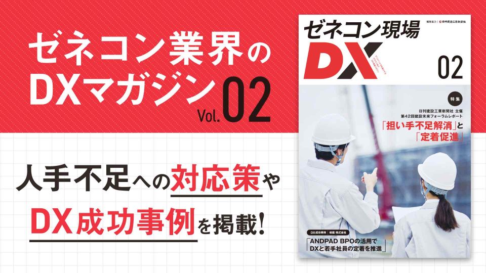 【ゼネコン向け】担い手不足解消と定着促進をテーマにした「建設未来フォーラム」のレポートを収録!また、ANDPAD BPOの活用で若手社員の定着を推進している事例もご紹介します。人手不足問題の解消へ向け…