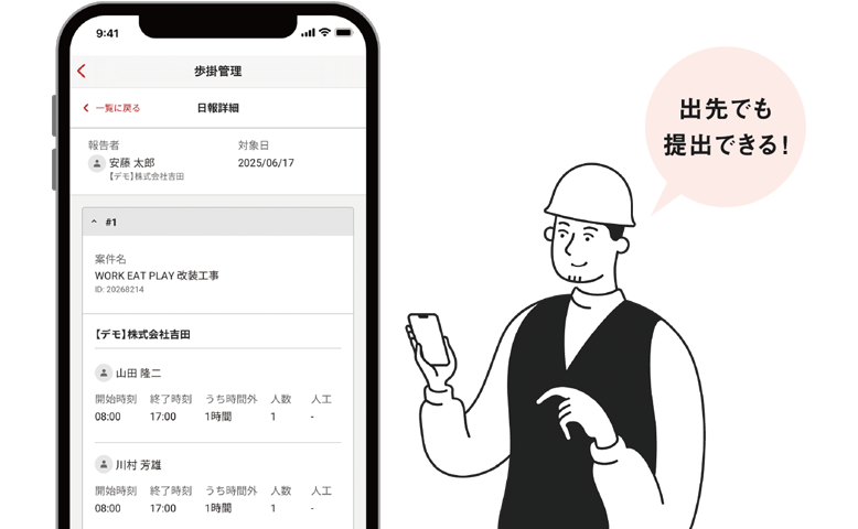 - 出先からスマホで日報提出が可能で、 提出のために帰社する必要がなくなる