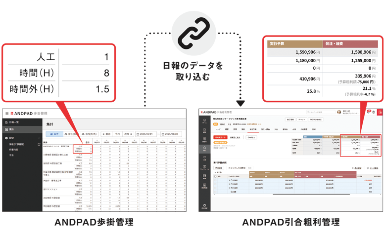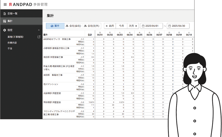 - 担当現場の人工の消化状況をリアルタイムに把握できる